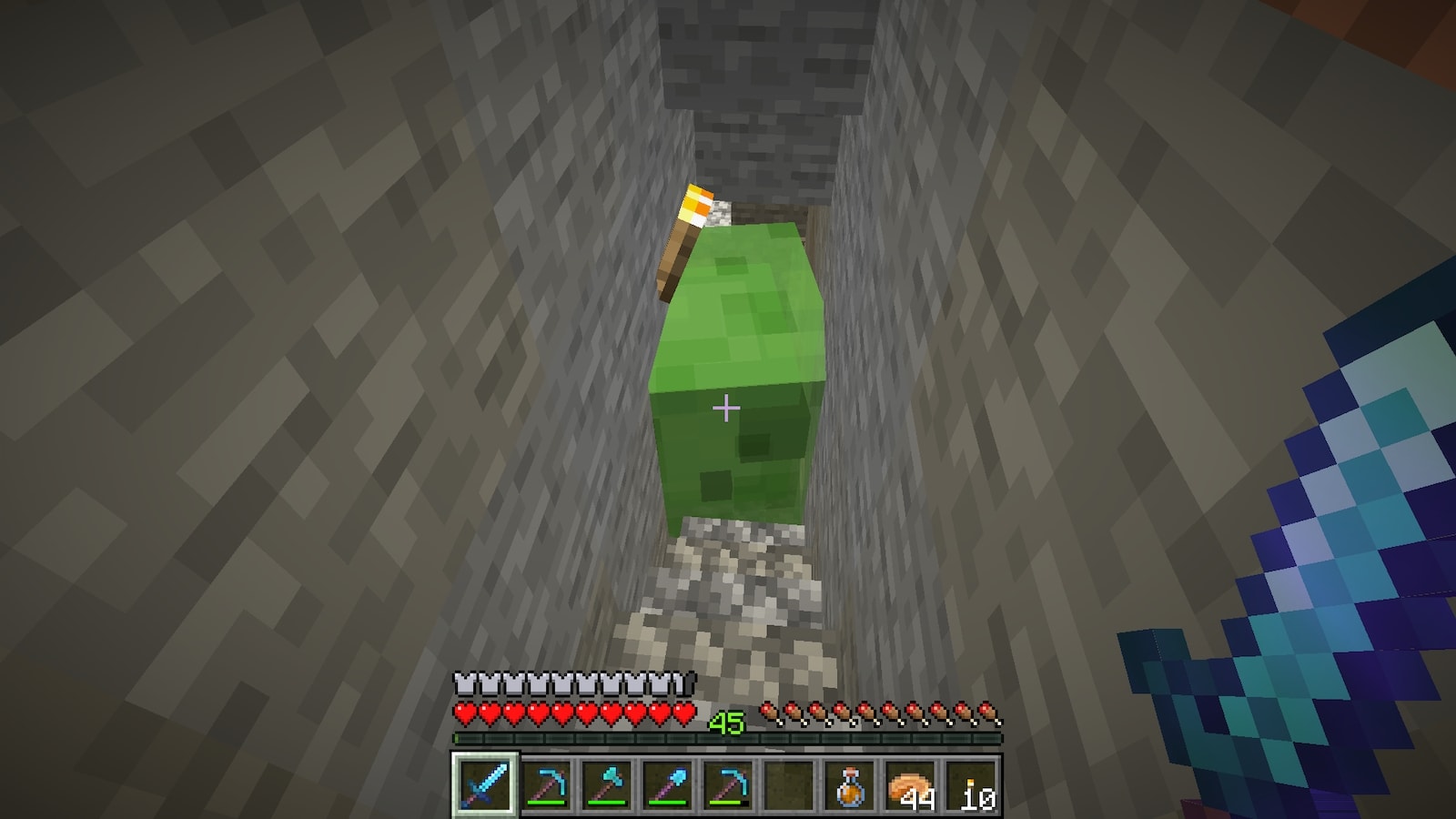 石を集めるために掘っていた場所がスライムチャンクだったらしく、地下へ続く階段に詰まってました。