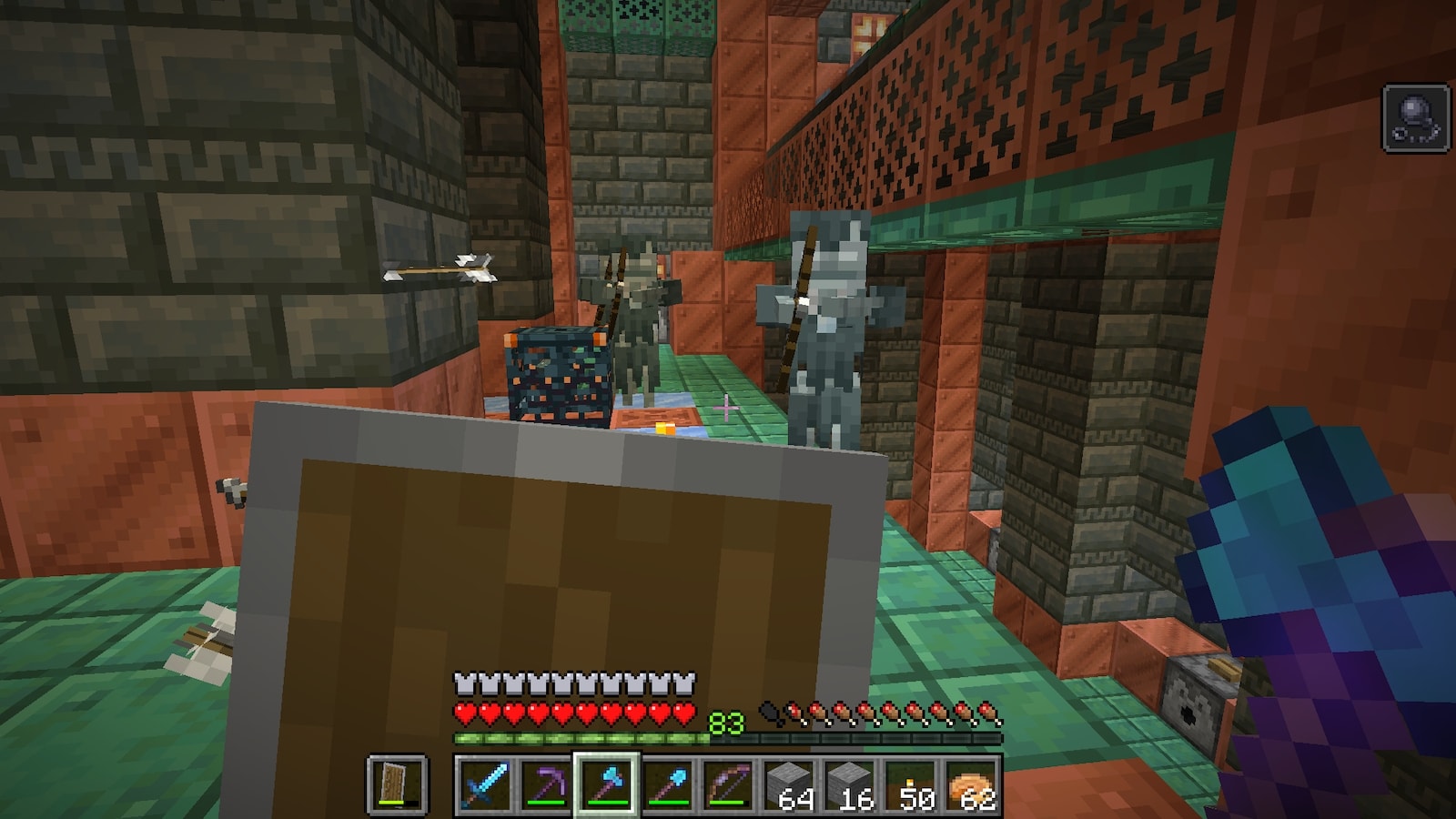 何時間もブロックを削ってるだけでは飽きてくる(というかブログの更新ができない)ので、1.21 の新要素である「トライアルチャンバー」に行ってみようと思います。