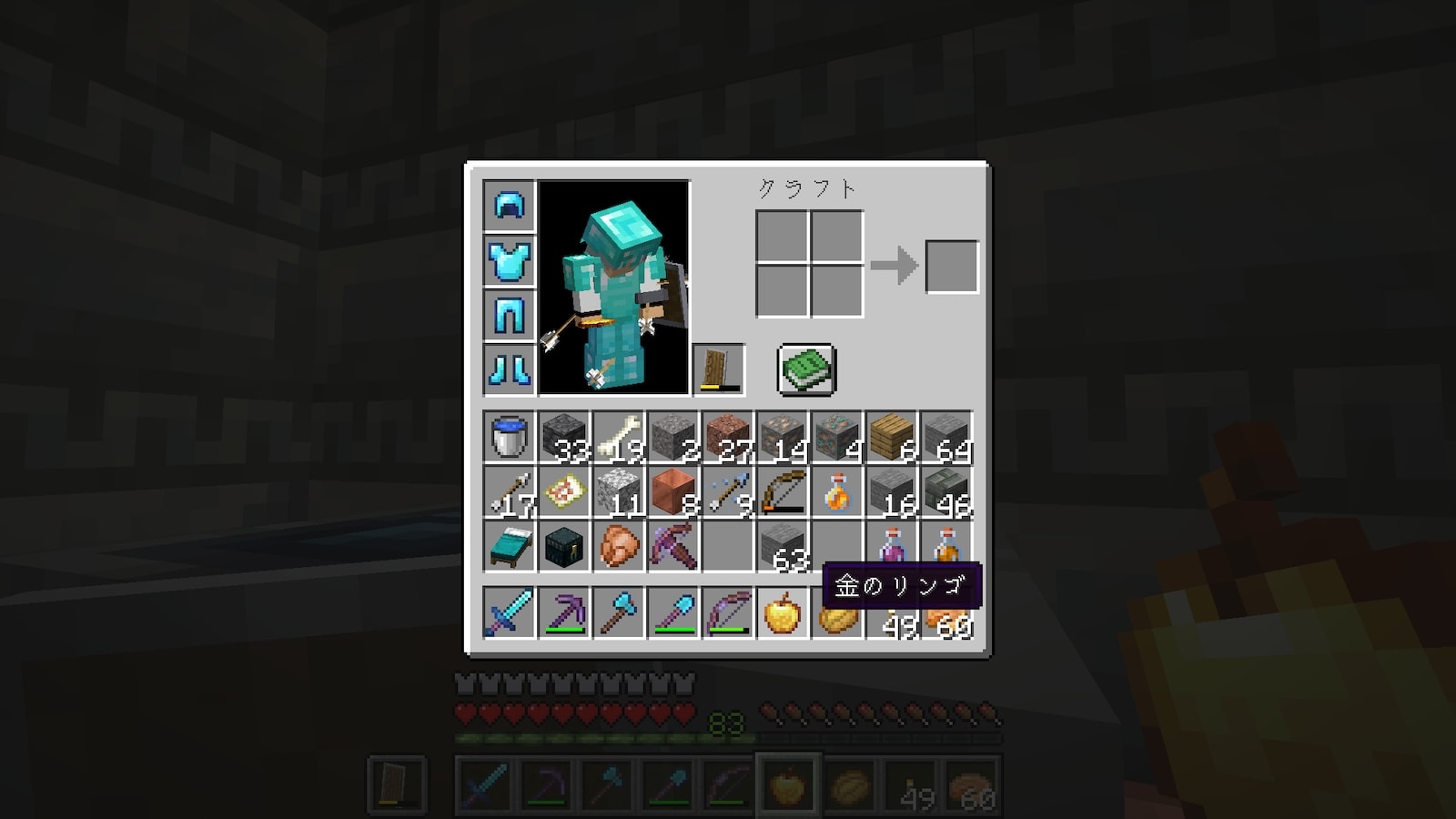 他のブロックみたいに一瞬で破壊できるわけではありませんが、少しだけ速くなるので絶対使ったほうが良いです。なんで使わなかったんだろう。