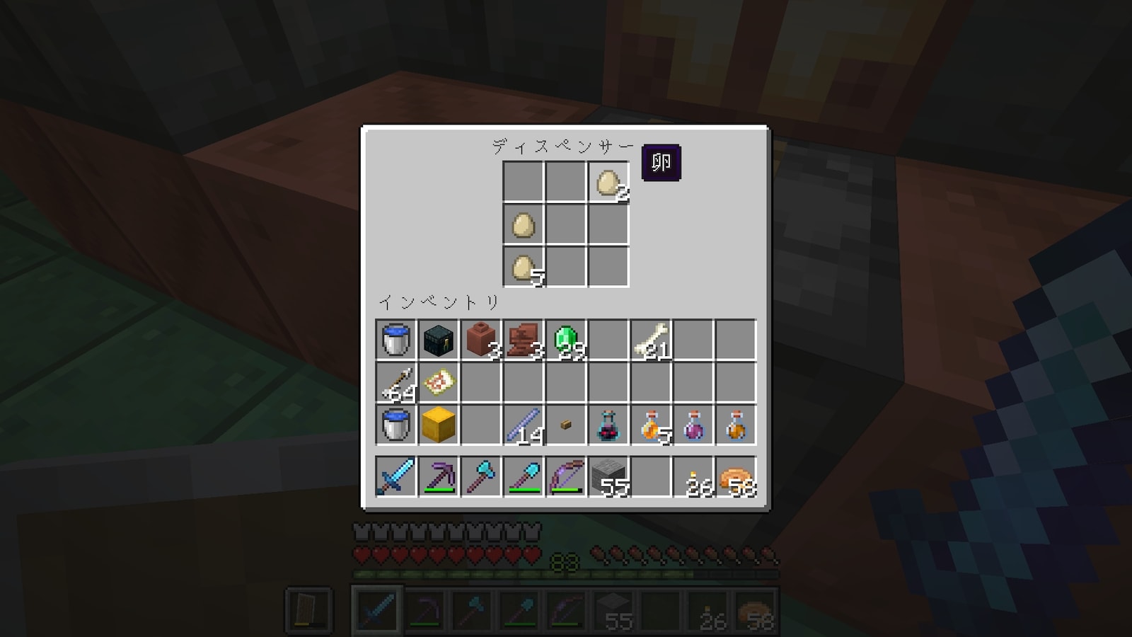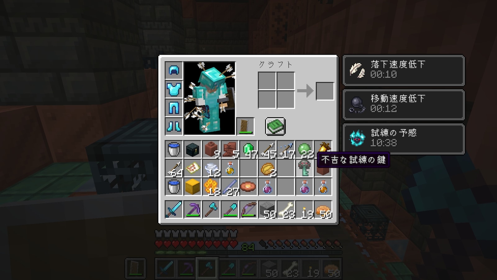 これを飲んだ状態でスポナーに近づくと強いモンスターが現れて、試練をクリアすると違うアイテムが貰えるらしい。