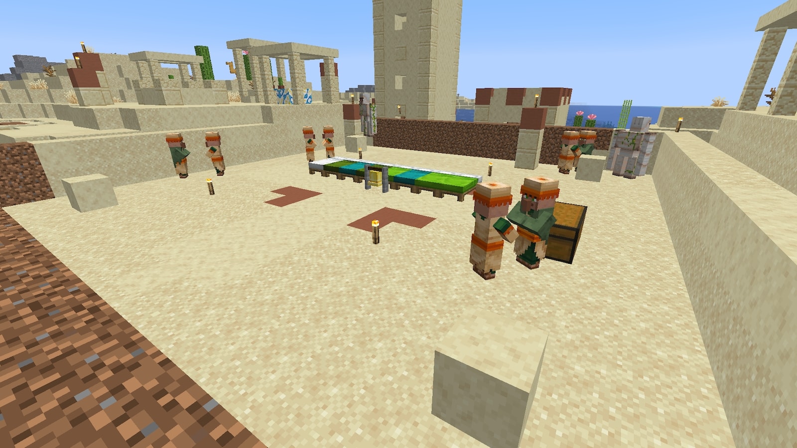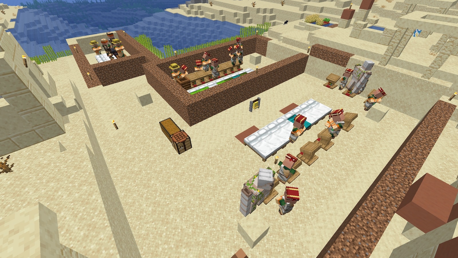 村人の住むスペースも完成。仮で交易所もひとつ作ってみました。