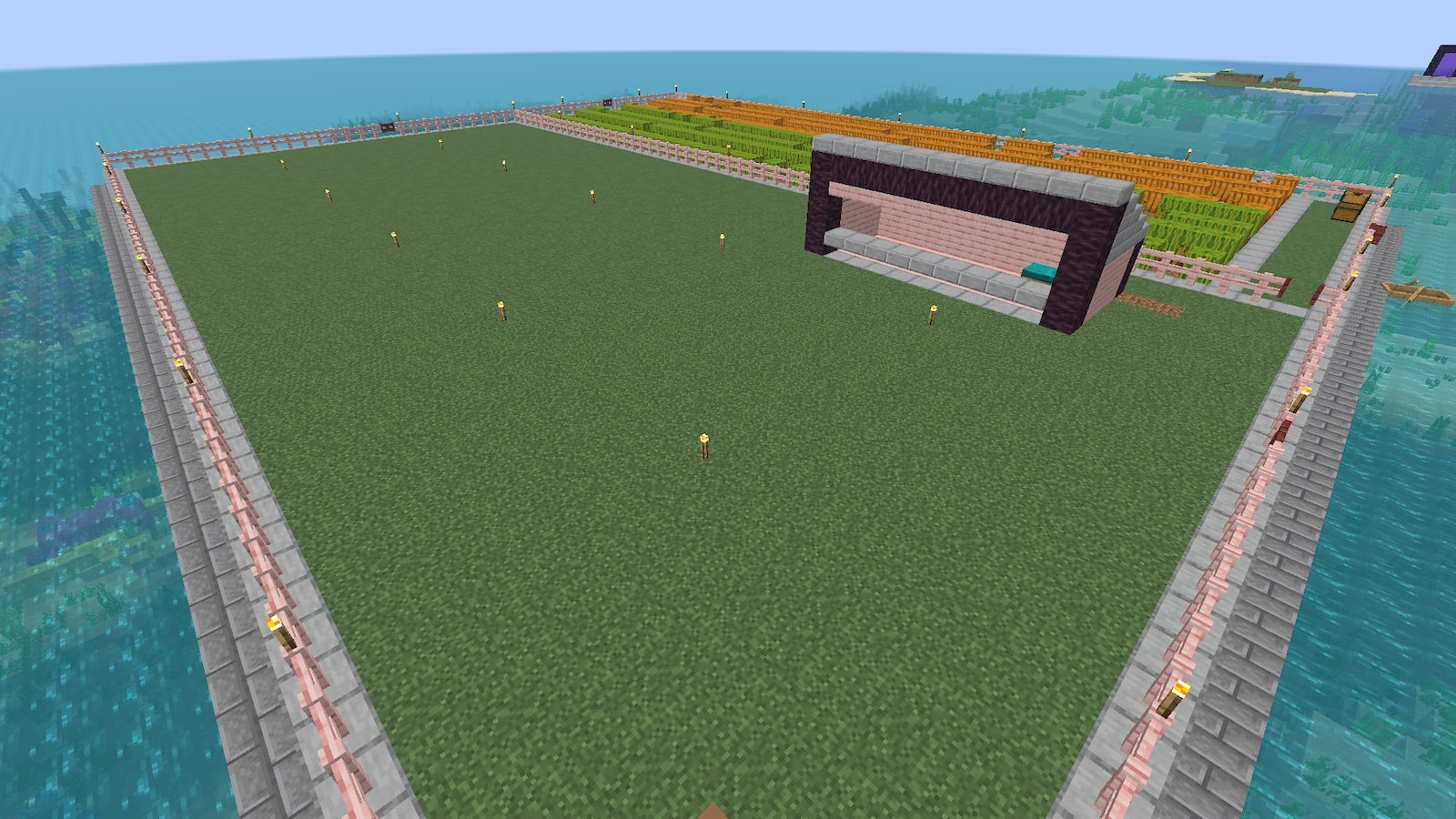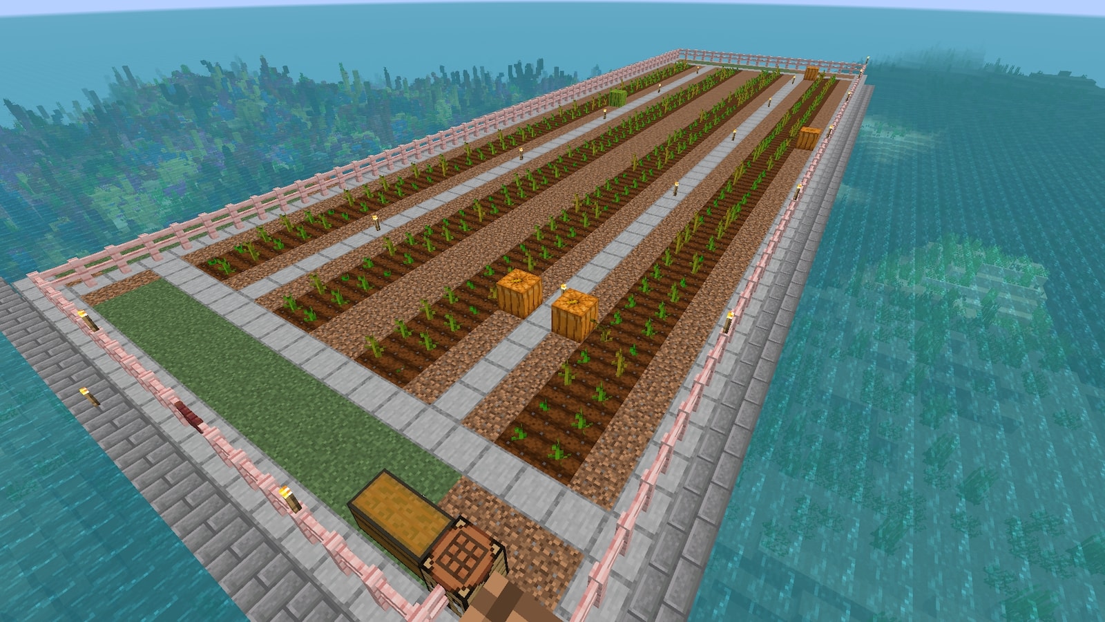 作ってから気が付きましたが、ここに村人を連れてくると畑の方にもネコが湧いて荒らされる気がします。もうちょっと離すべきだったかな?最悪茎の上にガラスブロックを置けばなんとかなるでしょう。