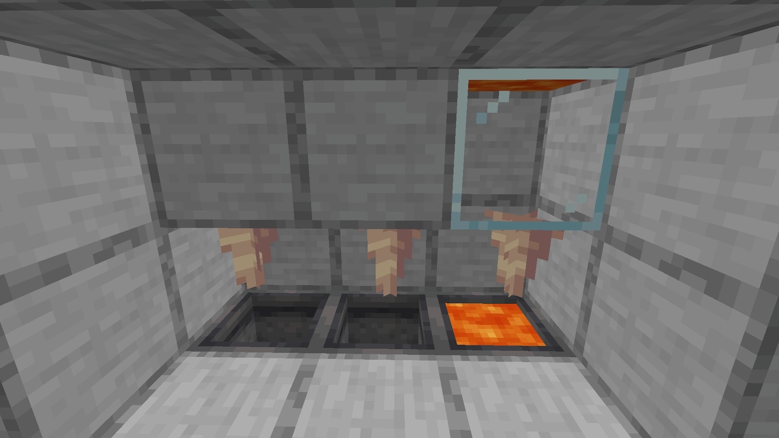 ガラスブロックに変えた瞬間になぜか溶岩がたまりました。