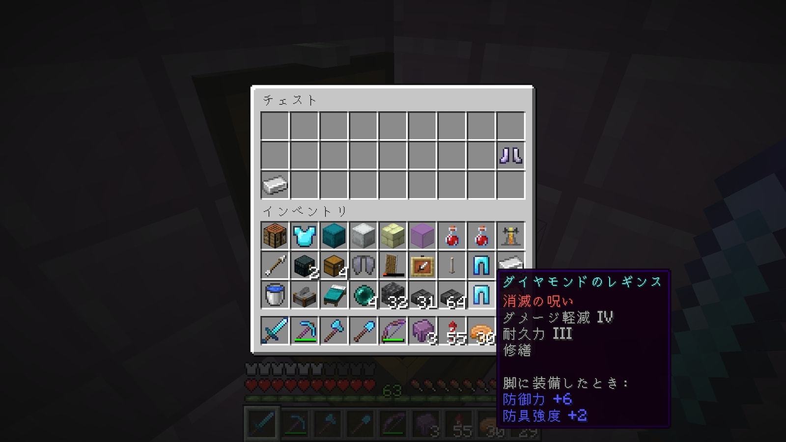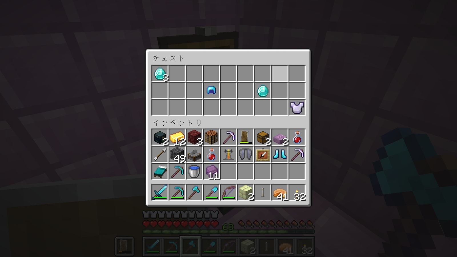エンドシティのチェストは、エンチャント付きのダイヤ装備など結構良いものが入っています。司書ガチャを終えてしまった私には不要ですが・・・。