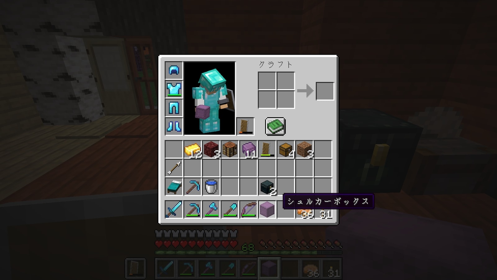 シュルカーボックスを3つ作って、シュルカーの殻がまだ30個余っています。シュルカーボックス1つで殻を2つ使いますが、全色作れるだけの数は手に入れました。
