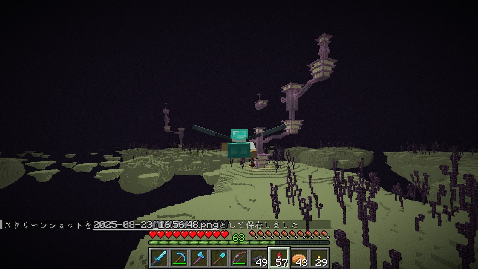 1個目があまりにも簡単に見つかってしまったので、2個目もエリトラを使わないで探しに行こうと思います。