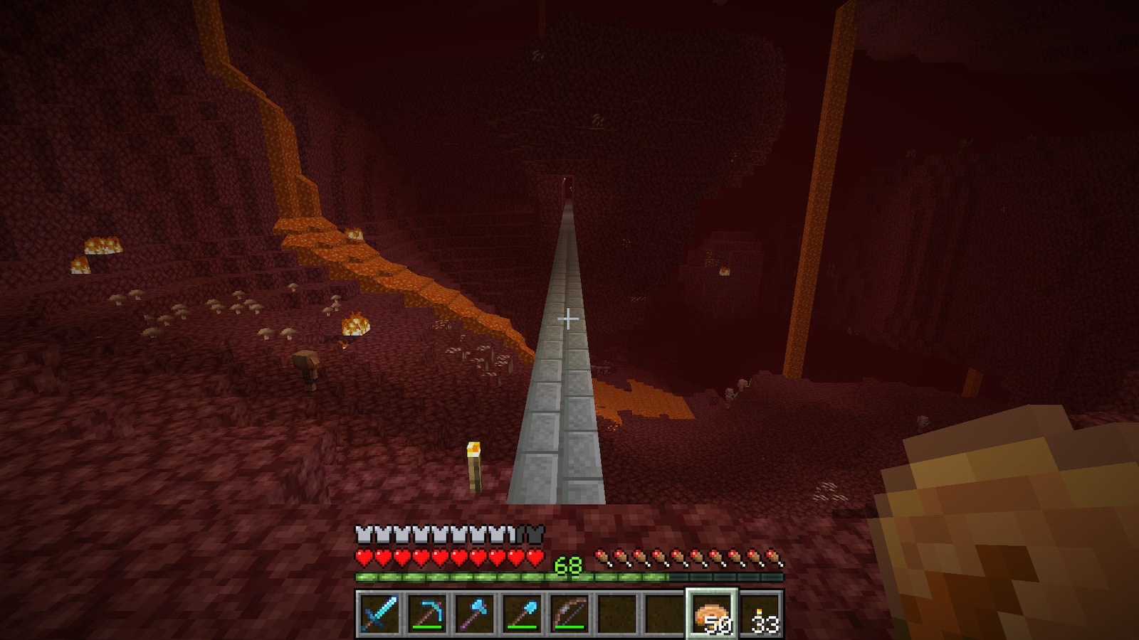 ネザー経由のエンドポータルまでの道を簡易的に整備しました。とりあえずこれで十分。
