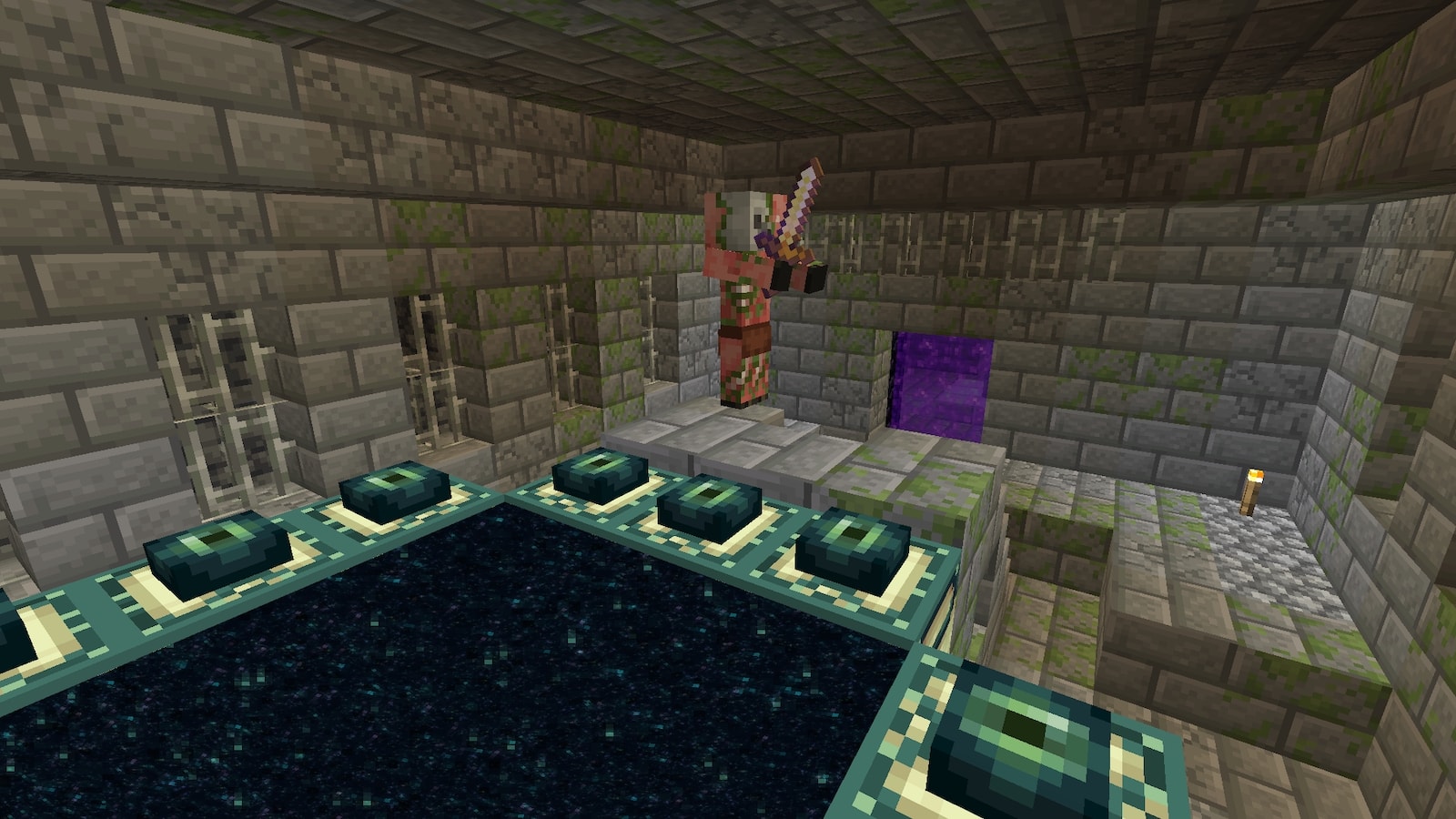 一緒にエンドに行ってくれるのかな〜と思っていましたが、エンドポータルの周りを回って、ネザーに帰っていきました。