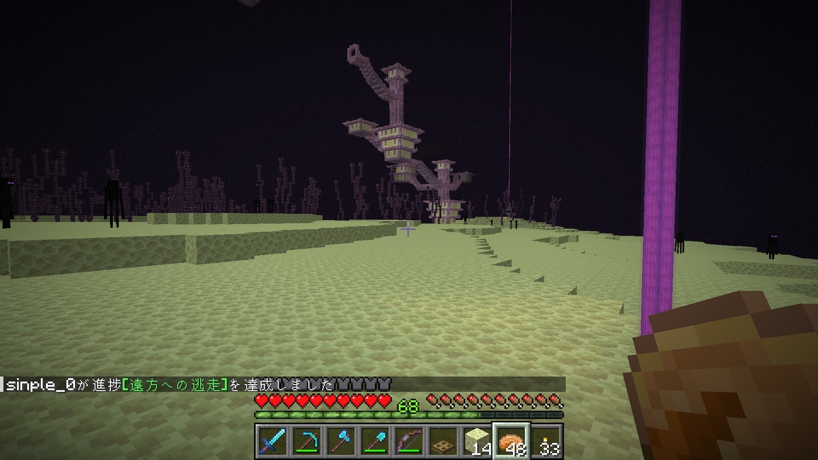 久しぶりのエンダードラゴン戦だったのでちょっと心配でしたが、無事に倒せて良かったです。結構余裕はありましたが・・・。