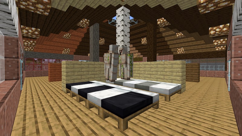 四隅にベッドを配置しています。家の中でもゴーレムが…。