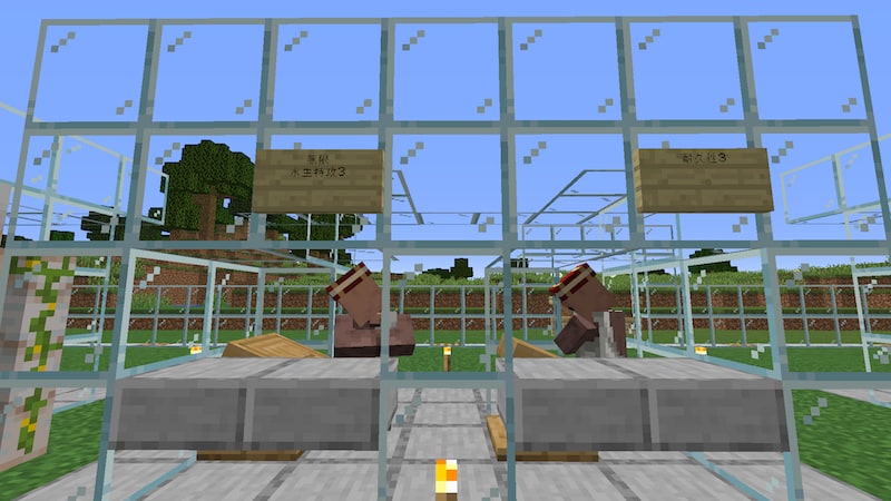 村人の仕事場です。看板をつけて交易できるエンチャント本の名前を書いていますが、たまに村人が入れ替わったりしてることがあります。統合版では入れ替わることはなかったのですが、バグでしょうか。