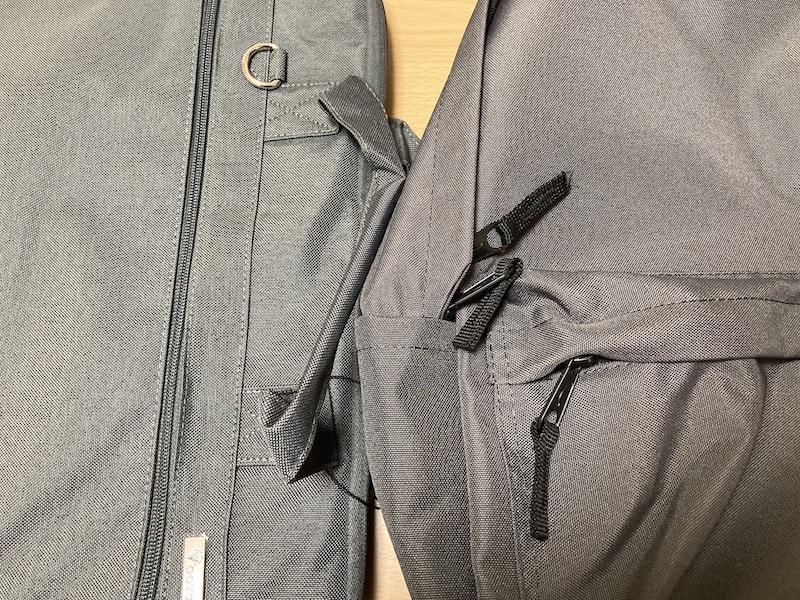 ロゴがファスナーの掴む部分に2箇所、ファスナー右上に1箇所です。ロゴがなければ100点に近い見た目です(私の主観です)。