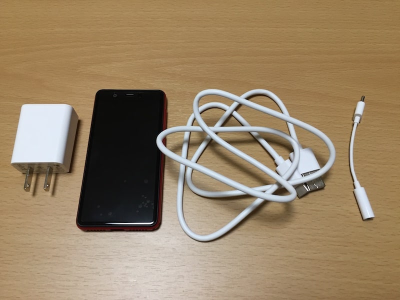 本体のポートは USB Type-C で、イヤホンジャックをさせる穴はありません。写真の一番右にあるのは USB Type-C とイヤホンの変換コネクタです。良くも悪くも日本企業らしい配慮です。