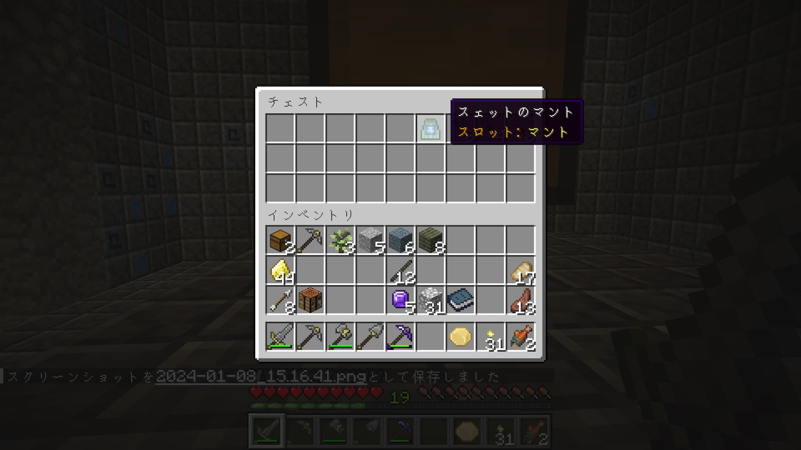 ダンジョンの奥はまだ行ってないので行ってみますか。チェストも見えてるし。