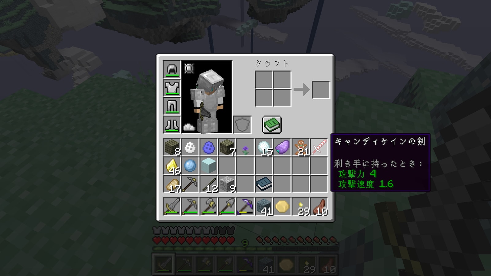 大量に破壊してわかったのは、爆発するかクッキーが出るかの2つが多くて、稀にキャンディケインの剣が出ます。攻撃力は木の剣と同じですが。