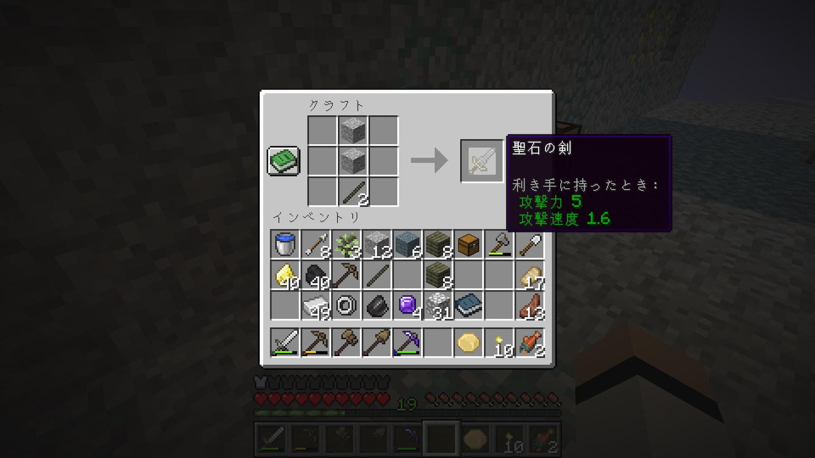 「聖石の剣」。名前は強そうですが、普通の石の剣と同じです。