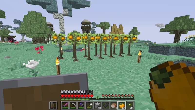 今更ですが、アンブロシアと棒でこの世界のたいまつが8つ作れます。バニラの石炭では4つなのでお得です。