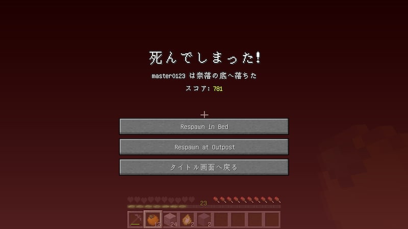リスポーン時に何故かツルハシだけ失われませんでした。よくわからない仕様。