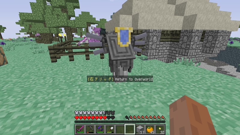 最後にこのアイテムをクラフトしてみました。設置して右クリックすると現世と行き来できます。現世に設置すると天界に行くことができます。