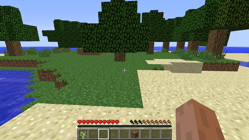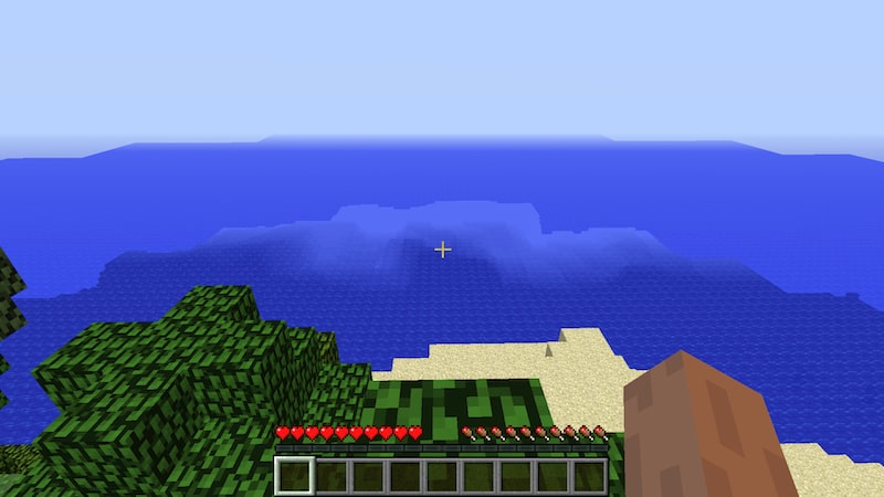 小さな孤島にスポーンしました。見渡す限りほぼ海です。