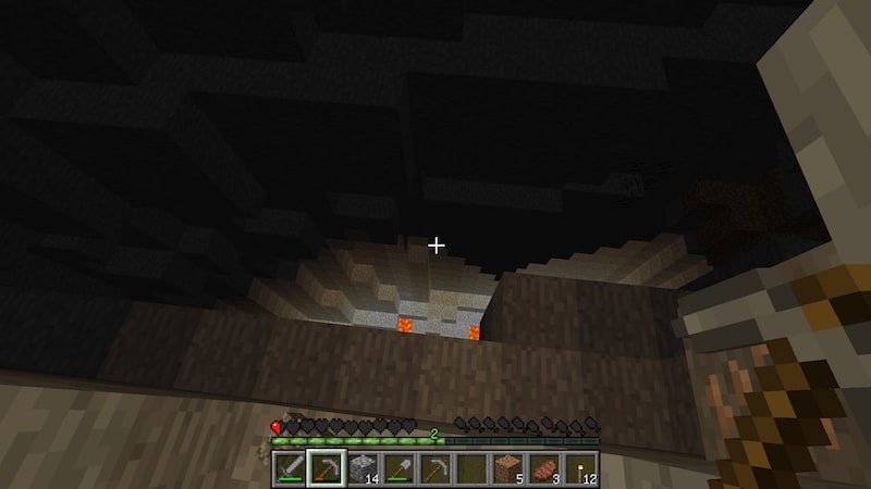 鉱石を探すために地下に階段掘りをしていたら、渓谷に出ました。ここにダイヤがあれば楽なのですが。