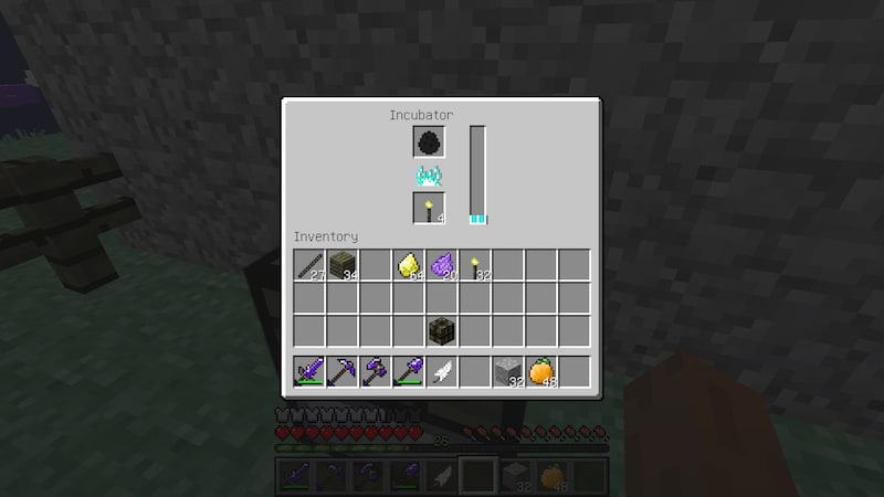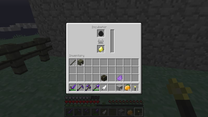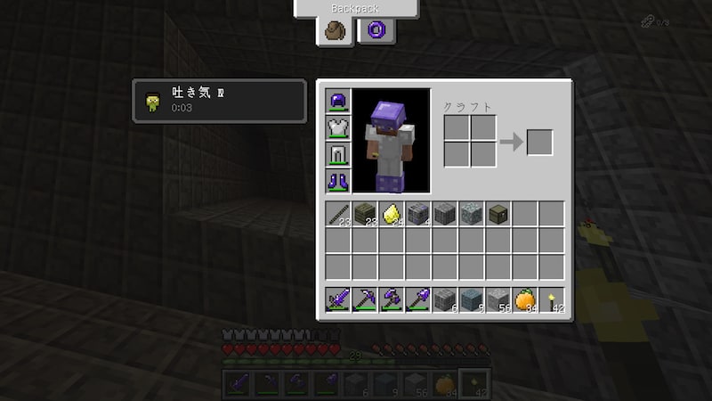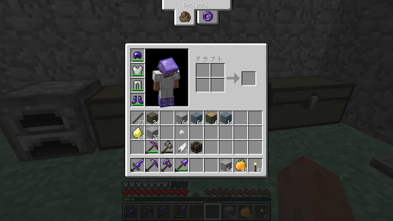 剣、ツルハシ、オノ、シャベルをゼイナイトで統一しました。バニラには無い色なのでかっこいいですね。