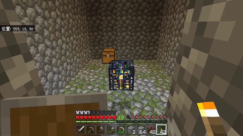 やけに狭いスポナー部屋です。しかも入り口がない。統合版ではこれが普通なのか?