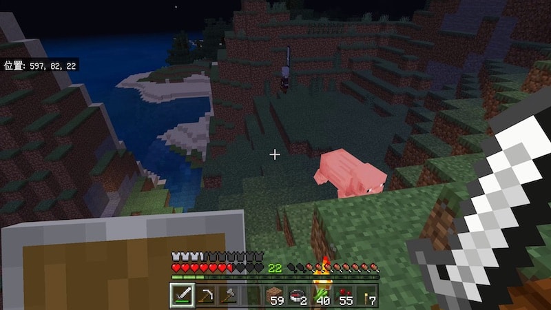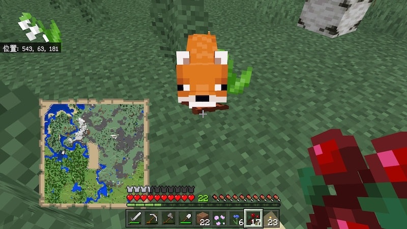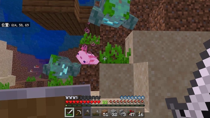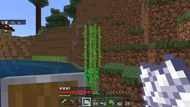 サトウキビを集めているときに、イカの子供を発見。初めて見ました。統合版だけらしいです。