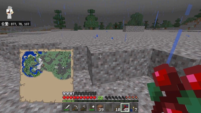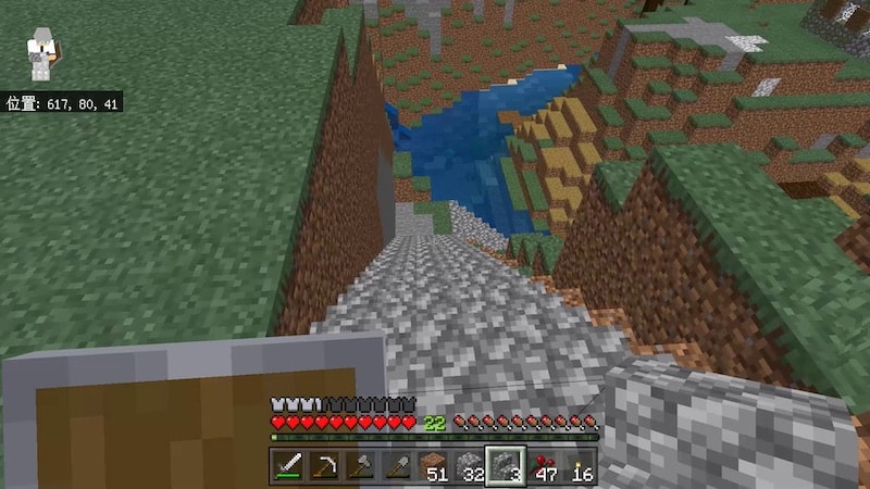 こんなに砂利が多いところは初めて見ました。Java版でもあるのかな?