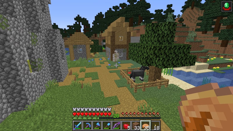 村にいたアイアンゴーレムの活躍もあり、なんとか勝利。久しぶりの戦闘で楽しかったので、拠点に帰ったらまたやってみます。村人との取引も有利になるので、エメラルド集めにもいいですね。忘れてた…。