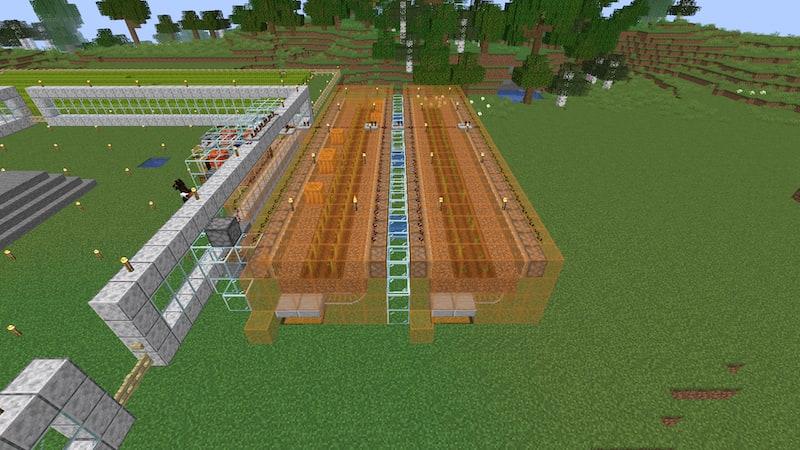 カボチャ回収装置をもう一つ追加しました。全部でカボチャ100個分です。作るのが大変なので、普通にカボチャ畑を400個分作ったほうが良いかも…。