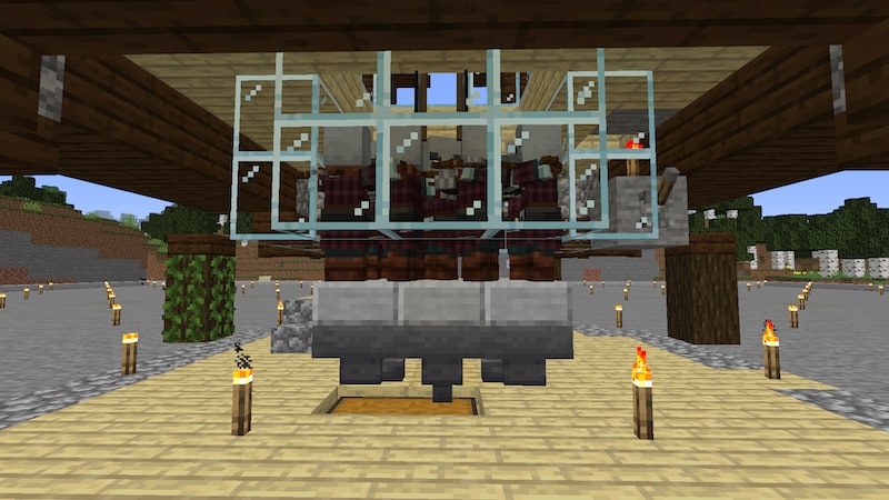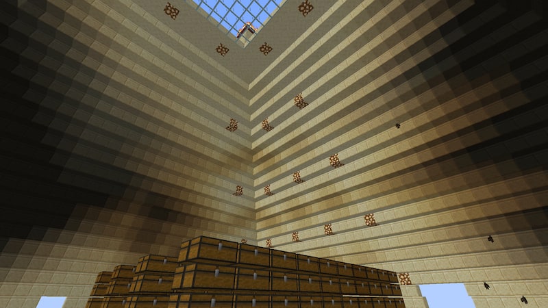 上から見るとこんな感じ。グロウストーンを一段低い位置に埋め込んで、その上に薄灰色のガラスを置いています。ちょっとでも神聖な感じが出るように、グロウストーンを多めに配置して明るくしています。