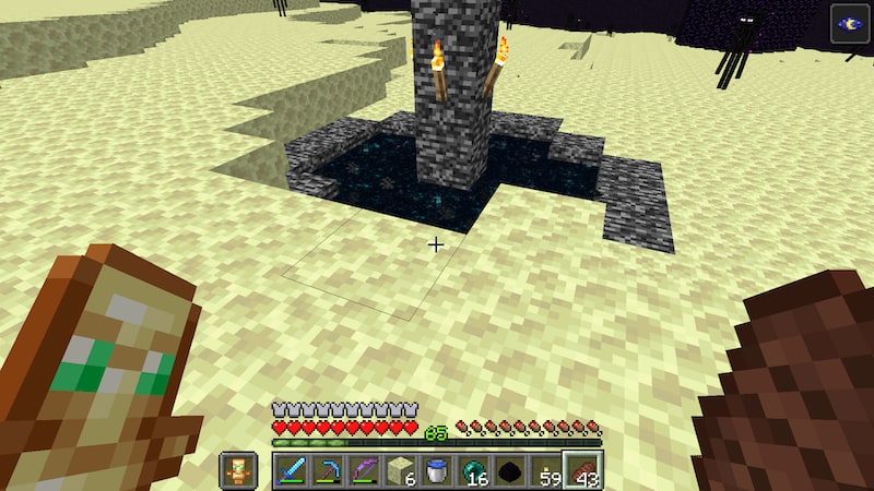 エンドラとは何度も戦っているので大丈夫だと思いますが、一応不死のトーテムは持っていきます。奈落に落ちたら終わりですけど。よく見るとブロックが土しかなかったので、要塞の壁を壊して石レンガも持っていくことに。