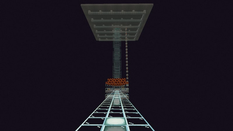 下から見るとこんな感じ。トロッコの下半分が見えていれば、エンダーマンはエンダーマイトに気がつくようです。