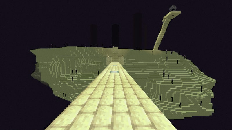 大陸側の通路はエンドストーンレンガを使いました。いずれはこの大陸も整地したい。ただ、エンドラを復活させたときに地形がどれだけ元に戻るのか気になるところ。クリエイティブで確認してから整地したほうが良いかも。