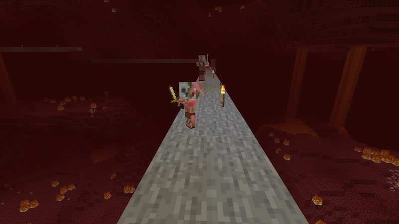Wikiには、「ゾンビピグリンは明るさレベルにかかわらず4体の群れでスポーンする。」となっていますが、これが「どんな明るさレベルでも湧き、4体の群れでスポーンする」という意味なのか、それとも「一定以下の明るさであれば、明るさレベルにかかわらず必ず4体の群れでスポーンする」という意味なのかよくわかりません。下付きハーフブロックで道を作ったほうが移動の邪魔にならないかも。