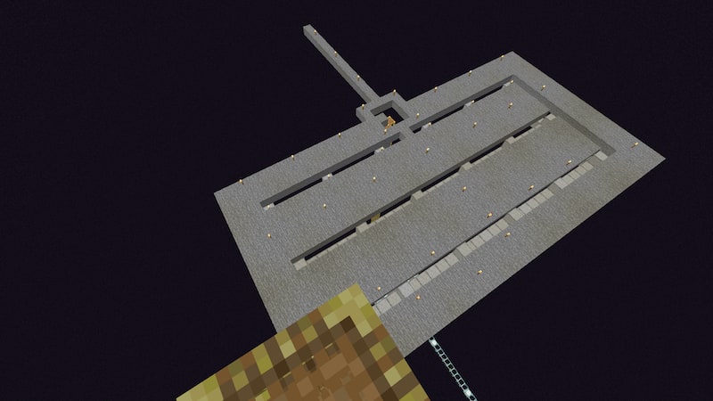 待機所です。11×11 の足場を作り、エンダーマンが落下してくる 3×3 の場所を出っ張らせます。