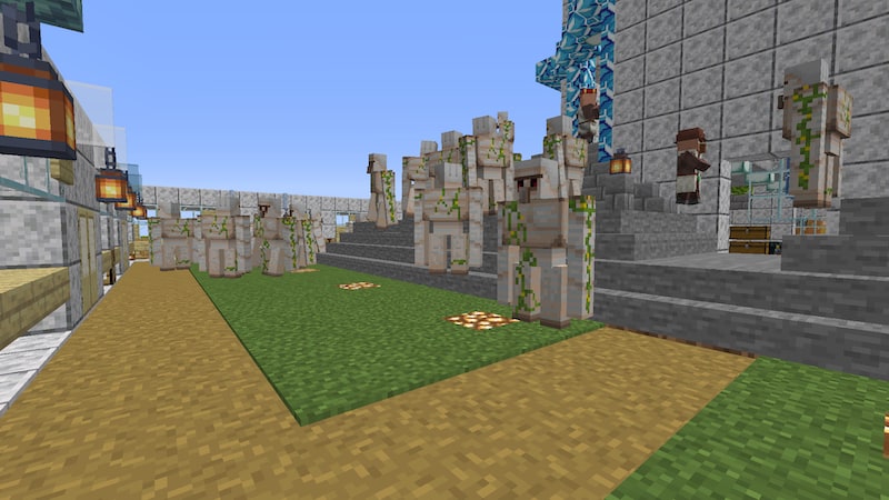 拠点の隅を柵で囲って30体くらい収容したり、村の外に30体くらい出したり、ウィザー戦用に地下に20体くらい移動させましたが、また村の中がゴーレムだらけになってきました。移動が不便ですし、村の中が重くて大変です。