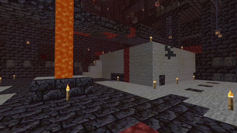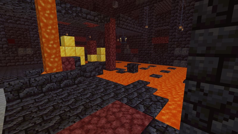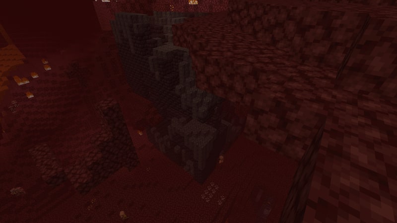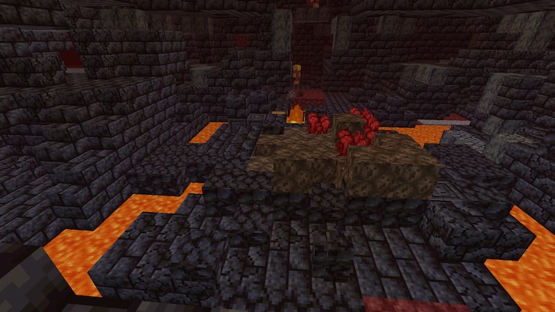 1つ目のピグリン要塞とは様子が違います。スポーンブロックも金ブロックもなく、ネザーウォートが生えています。