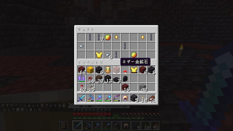 あとは金ブロックを回収して、ピグリンを倒すだけです。相手がピグリンだけなら、逃げるよりも戦ったほうが安全な気がします。