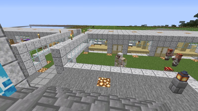 出入り口の高さを1.5ブロックにして、村人は移動できませんがプレイヤーはスニークで通れるようにしました。