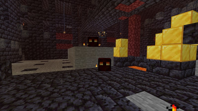 再びピグリン要塞にやってきました。回収してないチェストや金ブロックが残っていたので、すべて回収したいと思います。