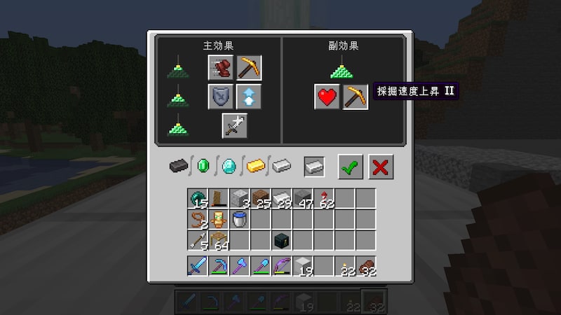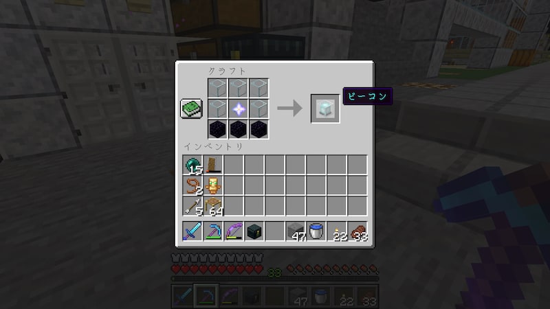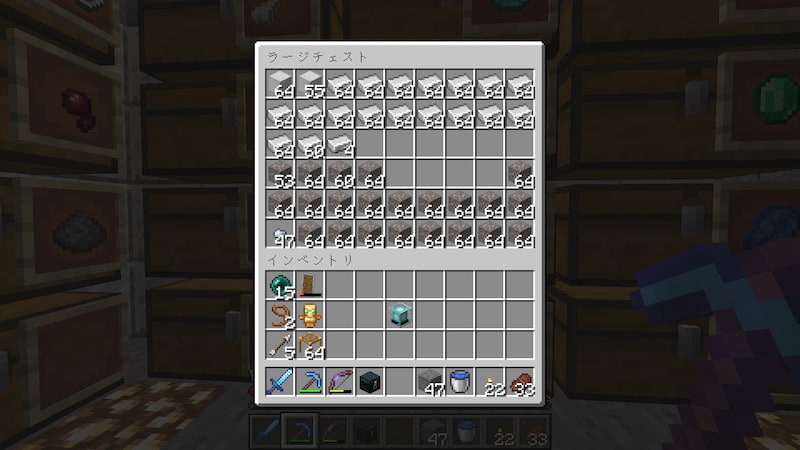 あとはエメラルドブロックを作って…エメラルド少なっ!そうだ。全ロスしたときに大量に使ったんだ。
