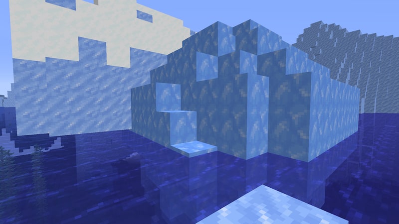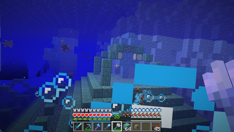 海底神殿の水抜き前にもっとスポンジを集めておきたいので、以前発見した氷山の下にある海底神殿を攻略していきます。
