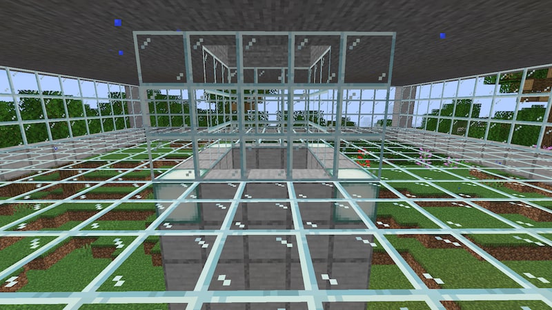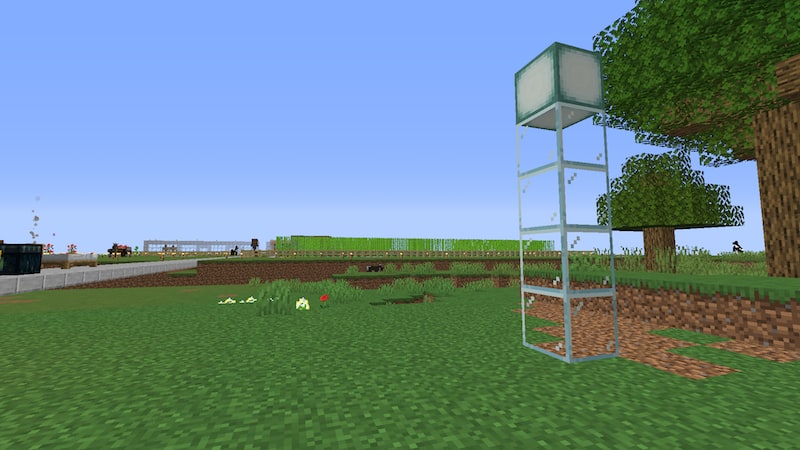 ガラスを置いた位置がスポーン地点です。もともと初期スポーンの近くに拠点を作っていたので、探すのは簡単でした。ゴーレムトラップは、スポーンチャンクと呼ばれる離れていても時間が停止しないエリアに作ると稼働し続けるので効率的です。