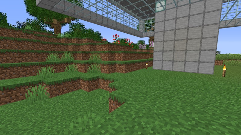 ゴーレムの湧き場です。村人の居住スペースをこの上に作ってもよいのですが、地面から離れてしまい行き来が少し不便になるので、動画と同じようにゴーレムの湧き場を上にしました。