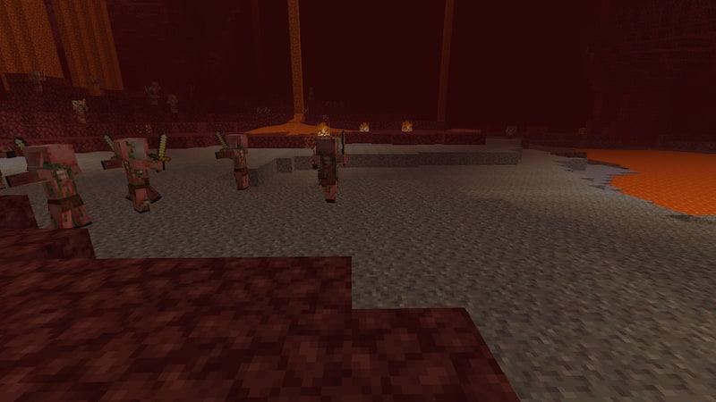 他に集めやすい場所はないかなぁと思ったときに、ネザーにも砂利地帯があったなぁと思い試してみると、水の中より集めやすいです。砂利集めはネザーですね。ただ、砂利地帯を探さなければならないというのと、ゾンビピグリンや溶岩に気をつけなければならないというデメリットはありますが…。