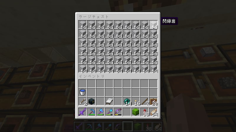 ドラウンドトラップとかウィザースケルトントラップとか、作らなければならないものはまだありますが、4つのトラップを立て続けに作ってきて少し疲れたので、今日はアイテム集めでもしようと思います。「すべてのアイテムをチェストいっぱいに集める」という課題です。
