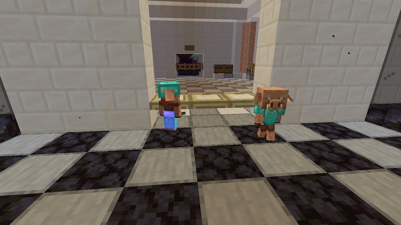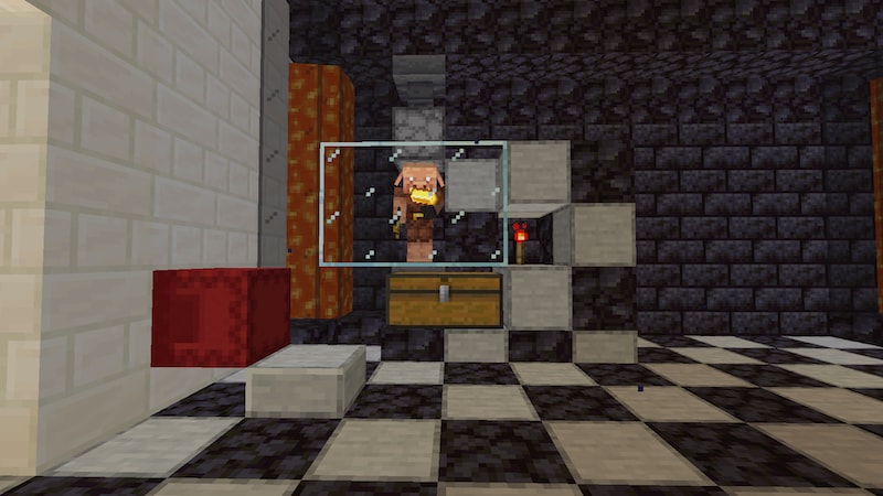 子ピグリンを拠点内に戻すときに、不慮の事故によりダイヤ装備をつけていた子ピグリンが亡くなられました。子ピグリンの1マス上にブロックを置いたら、なぜか窒息ダメージを受け始めました。高さ1マスは通れるはずなので、なぜダメージを受けたのかわかりません。ショック・・・。