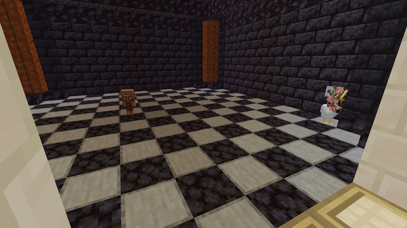 子ピグリンの生まれ変わりを探しに外に出て、しばらくして戻ってみるとニワトリだけいなくなっていました。上に乗っていたゾンビピグリンには名前をつけていたのでデスポーンしていませんでしたが、ニワトリはデスポーンしないはずなので、なぜニワトリが消えたのかわかりません。